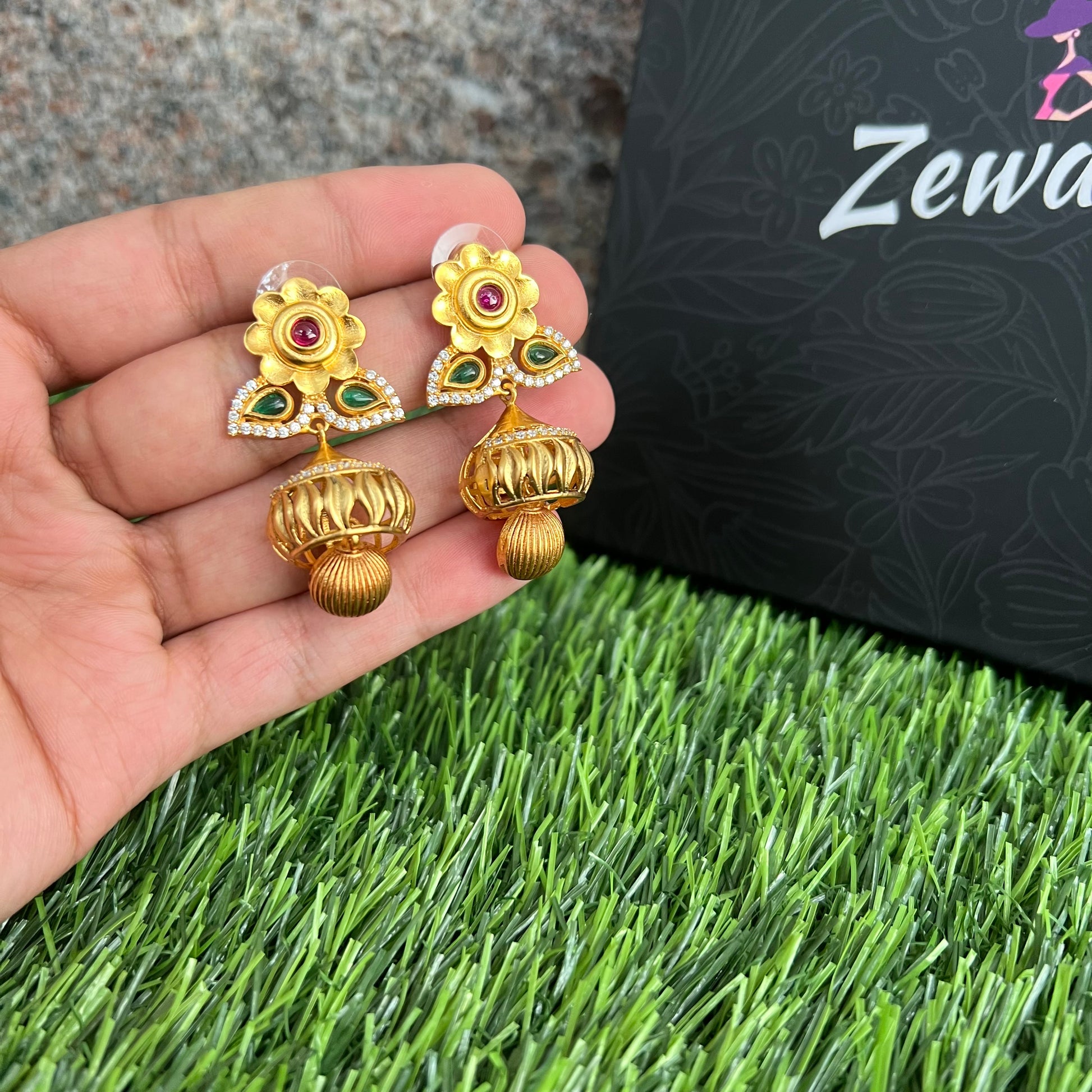Antique Jhumkis With Gold Plating