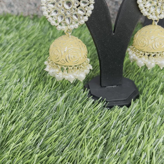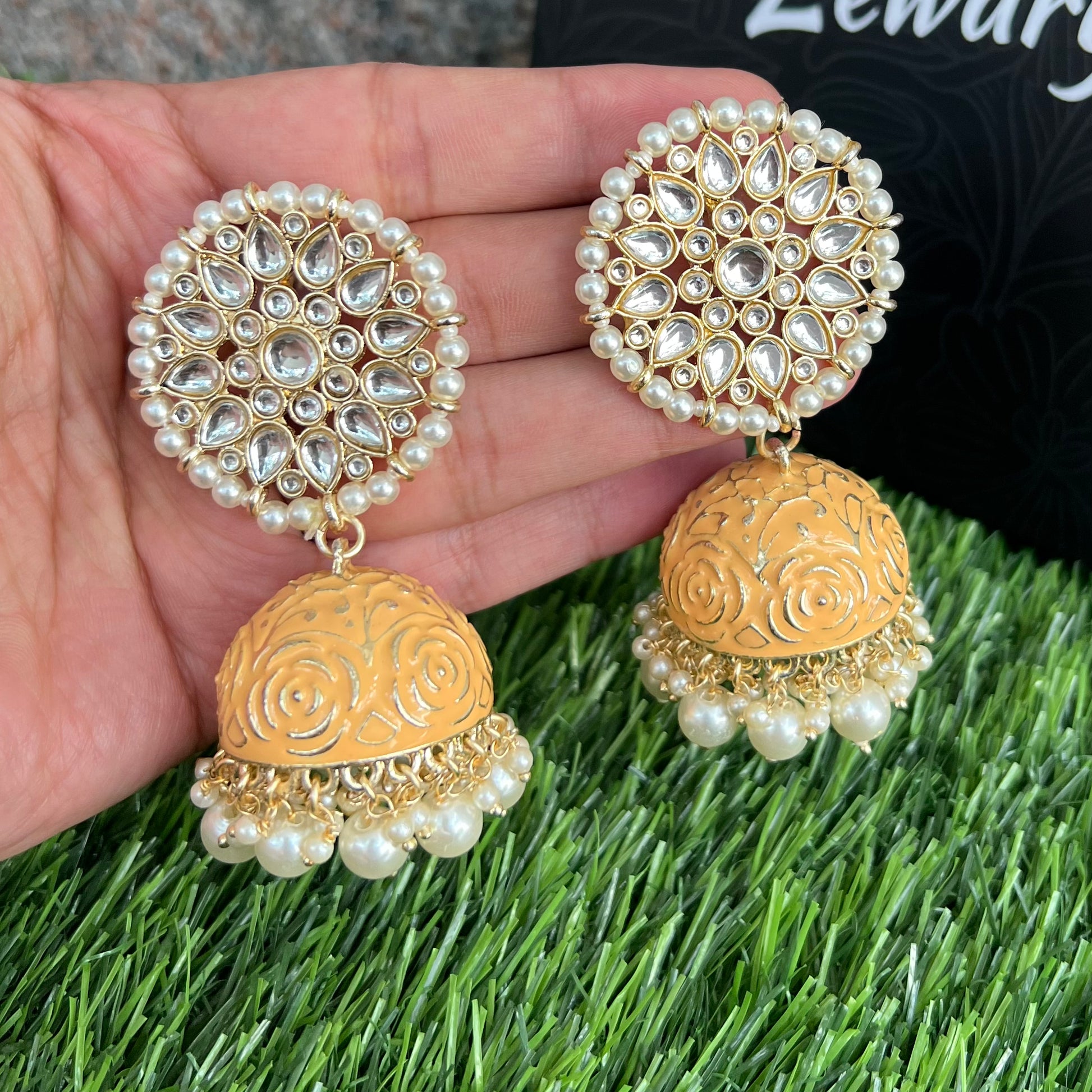 These peach oversized jhumkas are gonna make you fall in love with them.